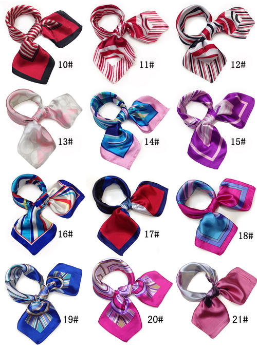 素材:45%シルク、55% ポリエステル ザイズ: 展開寸法 60cm×60cm 非常に実用的でお買い得なシルク調スカーフです。