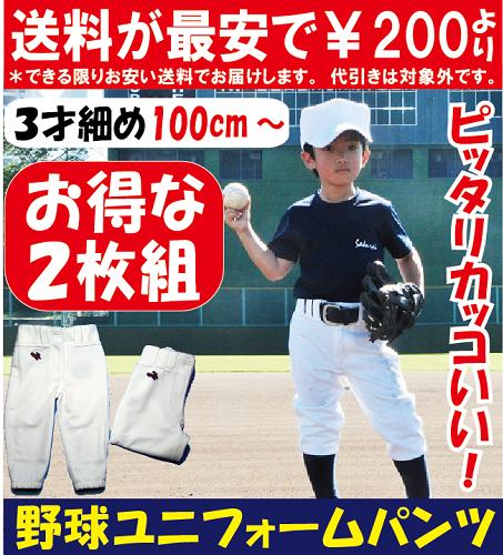 100cmからの野球練習用ユニフォームパンツお得2枚組 細めピッタリサイズ!・ジュニア・キッズ・少年野球・子供用野球ユニフォーム 練習着 100cm 110cm 120cm 130cm